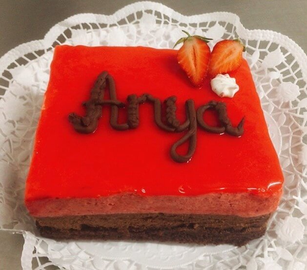5 szeletes Csoki-eper mousse, felirattal, dobozban